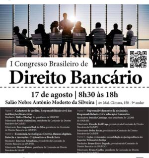 40. Palestra em 17/8/2018 no I Congresso das Comissões Estaduais de Direito Bancário da Ordem dos Advogados do Brasil. – Painel 5. Cadastros de Crédito. Responsabilidade Civil das Instituições Financeiras – Veja programação completa aqui