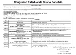 40. Palestra em 17/8/2018 no I Congresso das Comissões Estaduais de Direito Bancário da Ordem dos Advogados do Brasil. – Painel 5. Cadastros de Crédito. Responsabilidade Civil das Instituições Financeiras – Veja programação completa aqui
